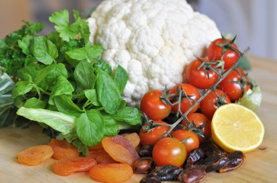 Taboulé de chou-fleur, abricots, dattes et tomates cerises