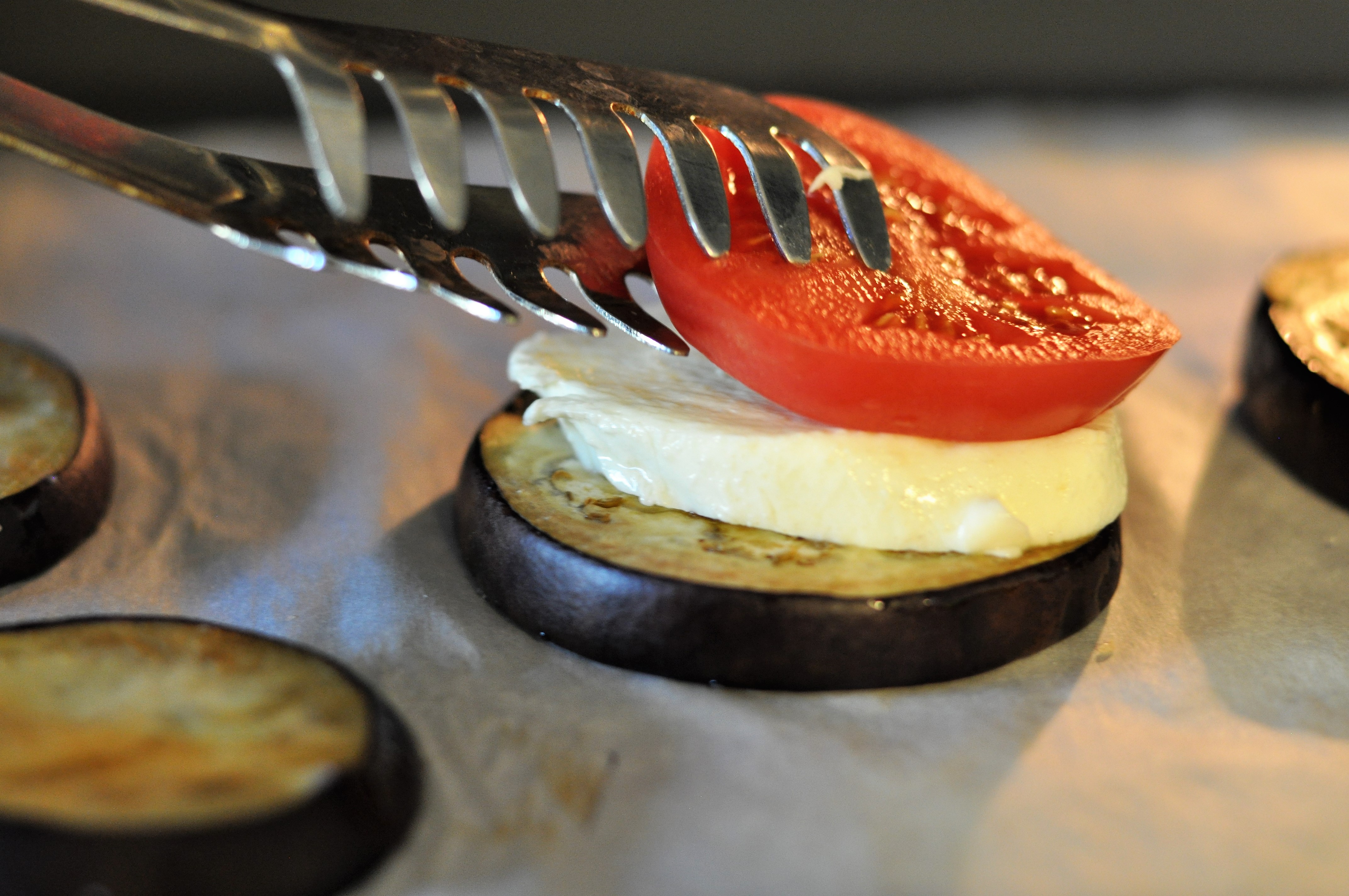 Caprese chaude sur aubergine grillée